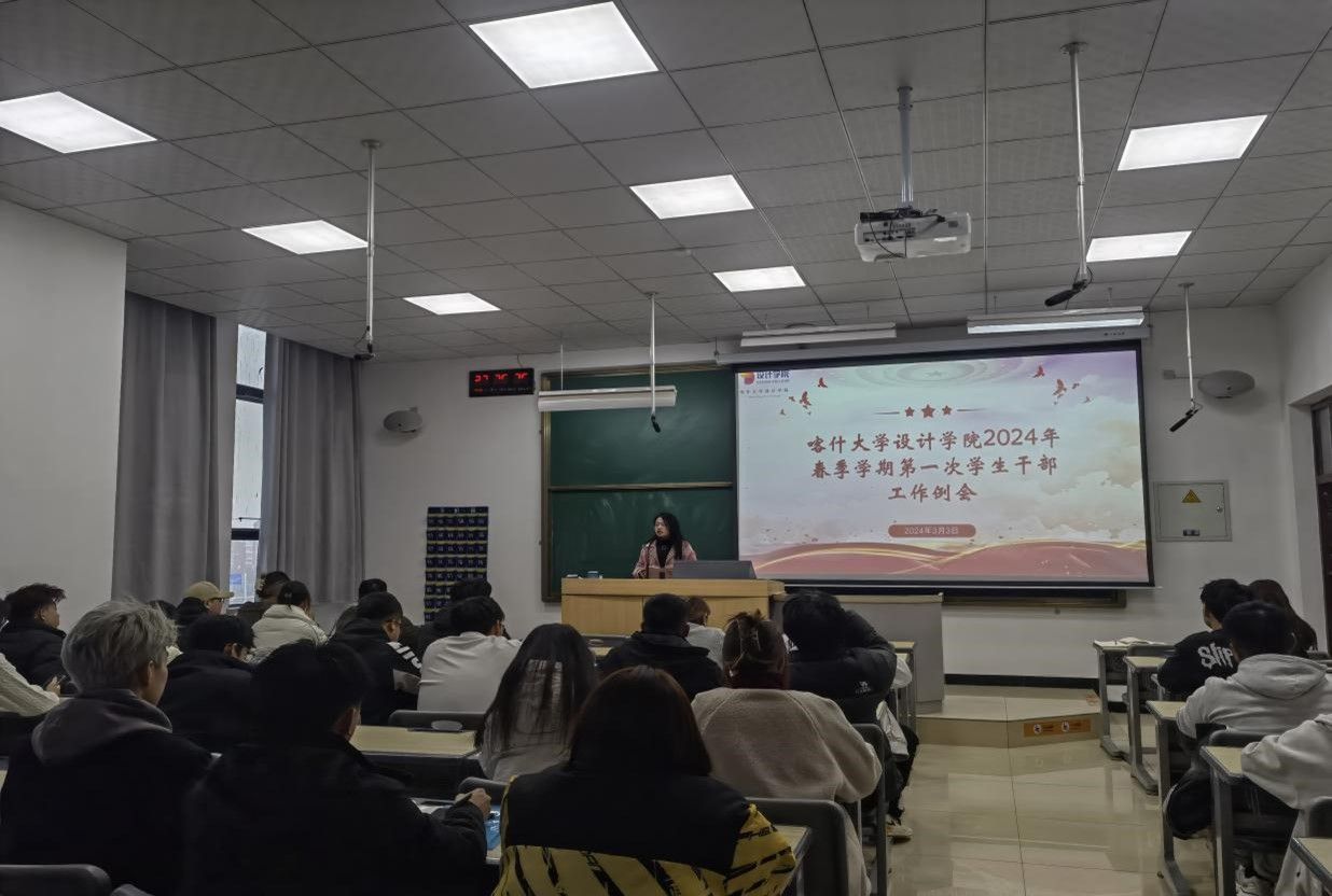为进一步加强各班班团干部基础业务能力和综合素质,及时传达2024年团委重点工作会议、学生骨干会议精神,提升学生干部的工作能力与责任感,确保各团支部的日常工作有序、高效进行,从而更好地服务同学,促进班级整体发展和团组织的活跃,设计学院于2024年3月3日开展2024年春季学期第一次学生干部工作例会。