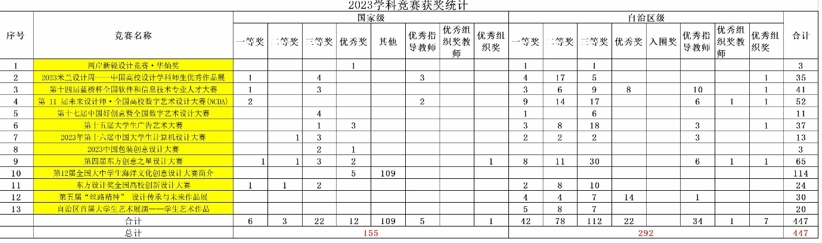 设计学院全年获奖统计