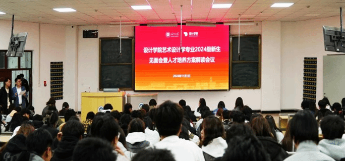 2024年11月1日晚,喀什大学设计学院艺术设计学专业教研室召开2024级新生见面会,见面会由艺术设计学教研室副主任赵鹏主持,副院长杨在珽、教研室主任谷金昊、教研室全体教师及2024级全体新生参加见面会。