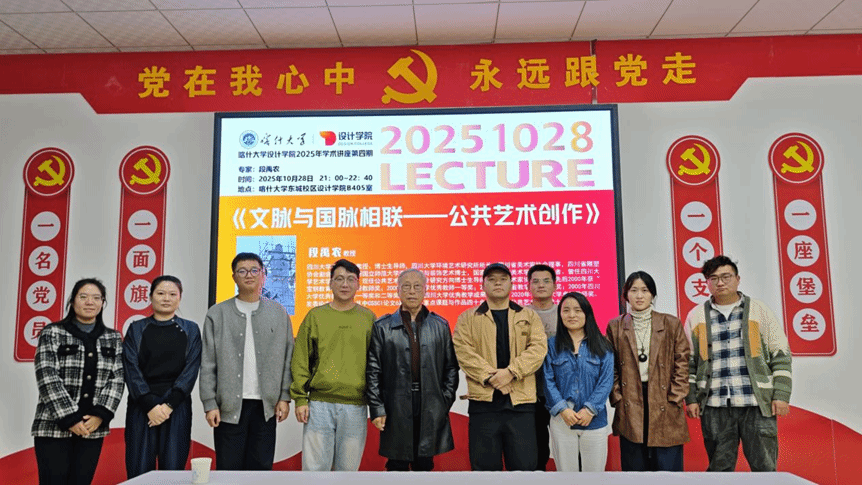 10月28日,设计学院环境设计专业在东城校区西楼B405室,举办2025年第四场专家系列讲座活动。主讲嘉宾为四川大学艺术学院教授、四川大学环境艺术研究所所长、四川省美术家协会理事、四川省雕塑协会副会长、四川大学艺术学院公共艺术与景观设计研究方向博士生导师段禹农教授,本次讲座以“文脉与国脉相联——公共艺术创作”为主题。设计学院环境设计教研室主任刘国华,副主任荣振霆,以及环境设计教研室全体教师参加本次讲座活动。