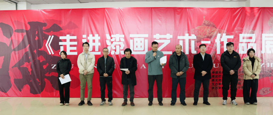 开幕式上,戴海涛代表学院致辞。他指出,《漆艺》课程是学院深入贯彻习近平文化思想,推动中华优秀传统文化创造性转化、创新性发展的重要实践。学院将以此次展览为契机,持续深化“文化传承—创新实践—服务地方”的一体化育人模式,为区域文化事业发展注入更多设计力量。