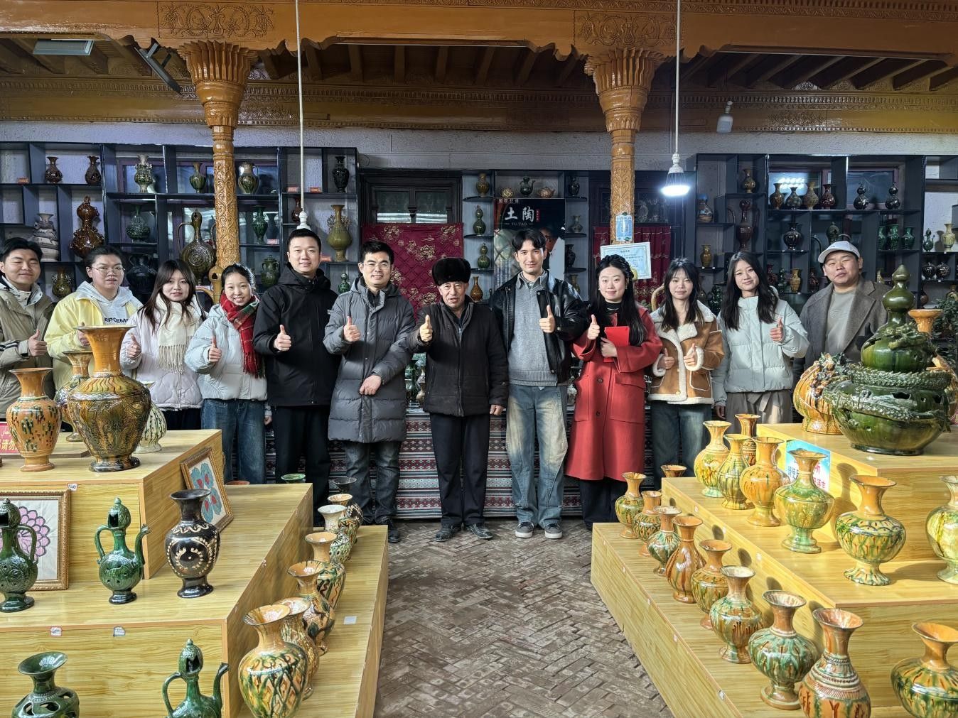 调研期间,团队还参观了英吉沙非遗展览馆,通过丰富的史料与实物,梳理了中华陶瓷发展脉络,深刻体会到英吉沙土陶作为丝绸之路文化交流产物所蕴含的中华民族交往交流交融的历史印记,认识到其在当下铸牢中华民族共同体意识、增强文化自信方面的独特价值。